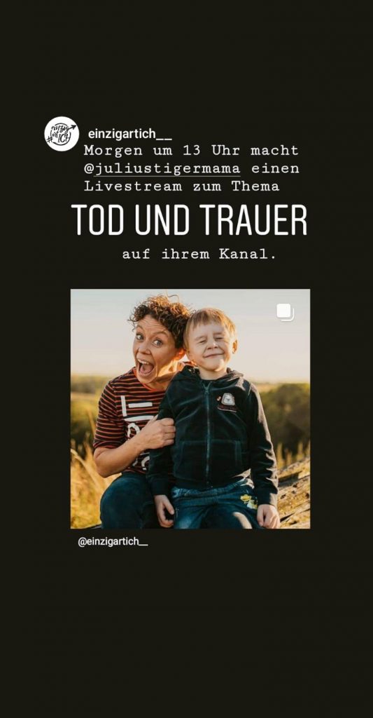 Morgen gibt es um 13h einen Livestream auf meinem Instagram Account: #Juliustigermama