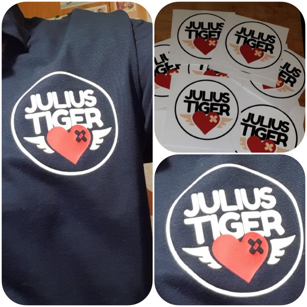 Heute konnte ich dann auch unsere Aufkleber abholen. Da JuliusTigerHerz ab jetzt eine geschützte Marke ist, bin ich damit gleich mal in Produktion gegangen. Erst mal nur für den Eigenbedarf 😉.