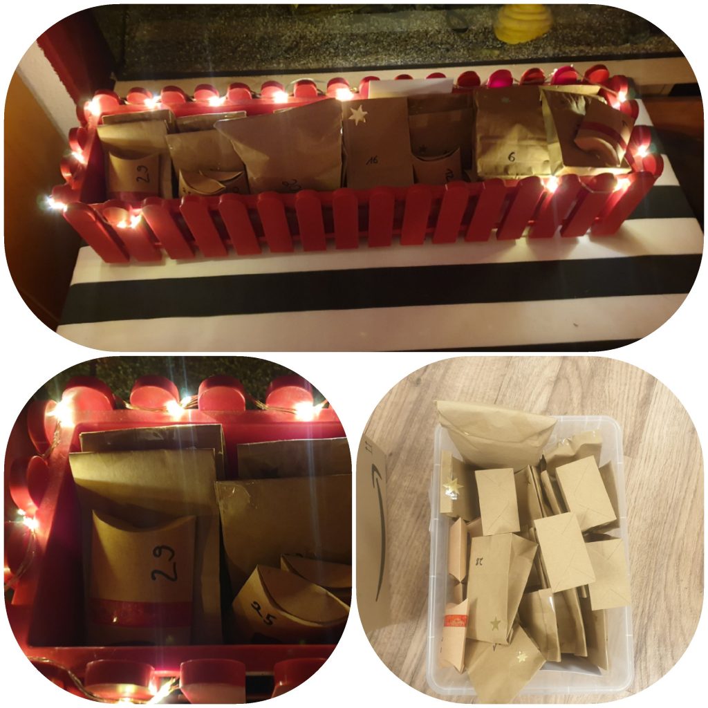 Am Mittwoch habe ich überraschend einen selbstgemachten Adventskalender geschenkt bekommen.