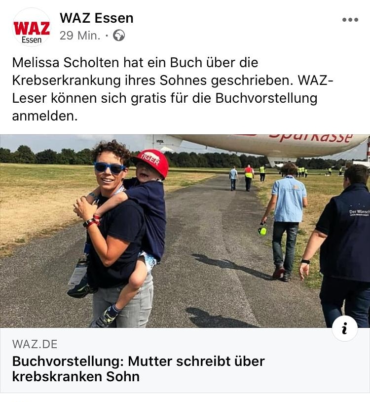 Uncategorized Tag 438 + 285 Februar 19, 2020 Tigerteam im der WAZ! https://www.waz.de/staedte/essen/buchvorstellung-mutter-schreibt-ueber-krebskranken-sohn-id228474137.html?utm_medium=Social&utm_source=Facebook#Echobox=1582129862 Älter Tag 438 + 284 Neuer Tag 438 + 287 Schreibe einen Kommentar Antwort abbrechen Deine E-Mail-Adresse wird nicht veröffentlicht. Erforderliche Felder sind mit * markiertName * E-Mail * Website Meinen Namen, meine E-Mail-Adresse und meine Website in diesem Browser für die nächste Kommentierung speichern. Bitte gebe eine Antwort in Ziffern ein:neunzehn + achtzehn = Kommentar