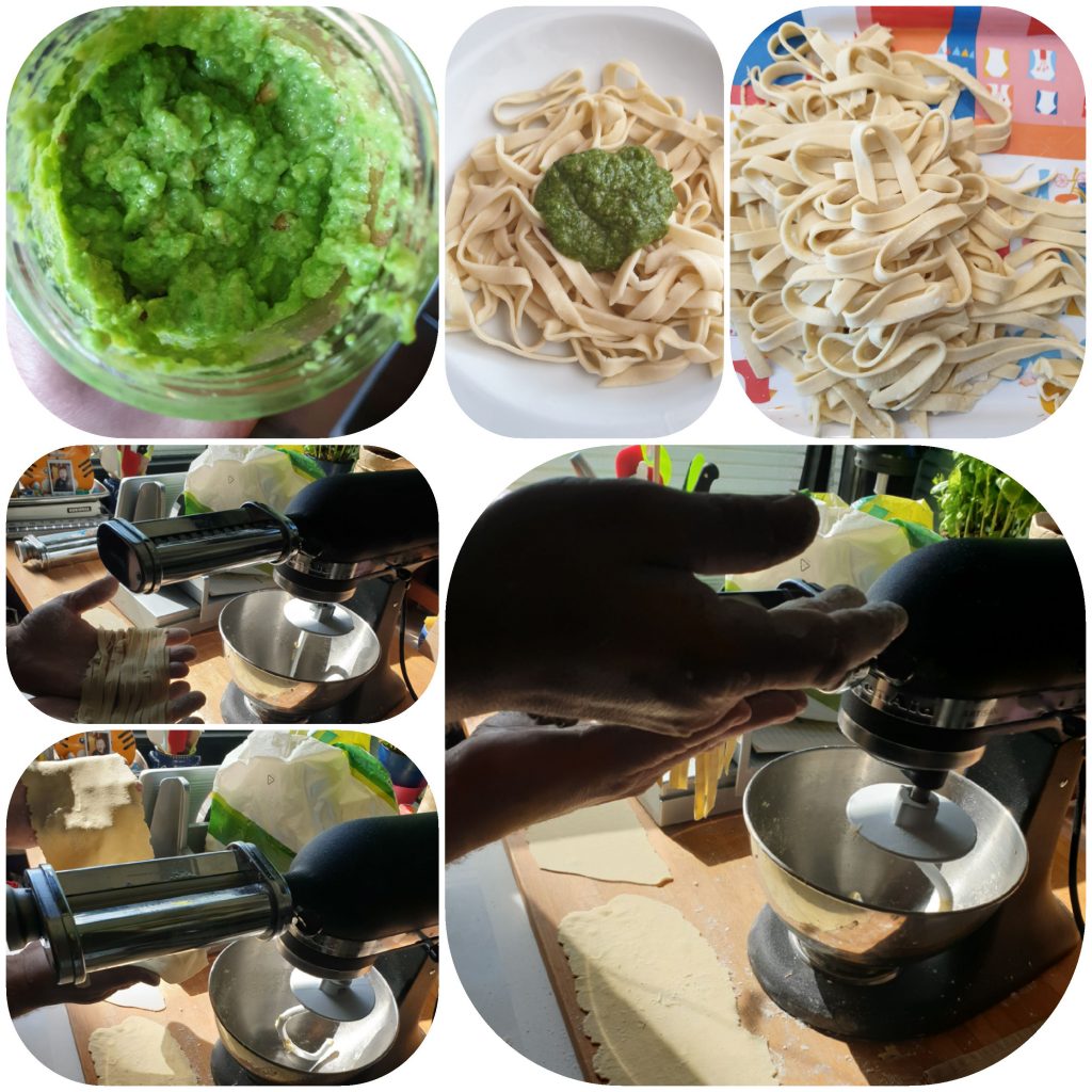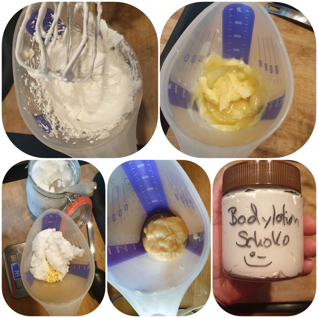 Weil wir gerade so richtig in Fahrt waren, haben nehen Nudeln und Brot, noch Basilikum und Erbsenpesto gemacht. Und ich habe das erste mal Bodylotion hergestellt….