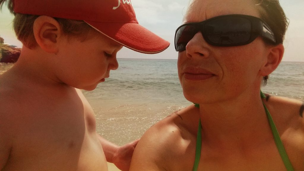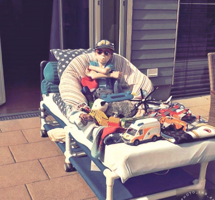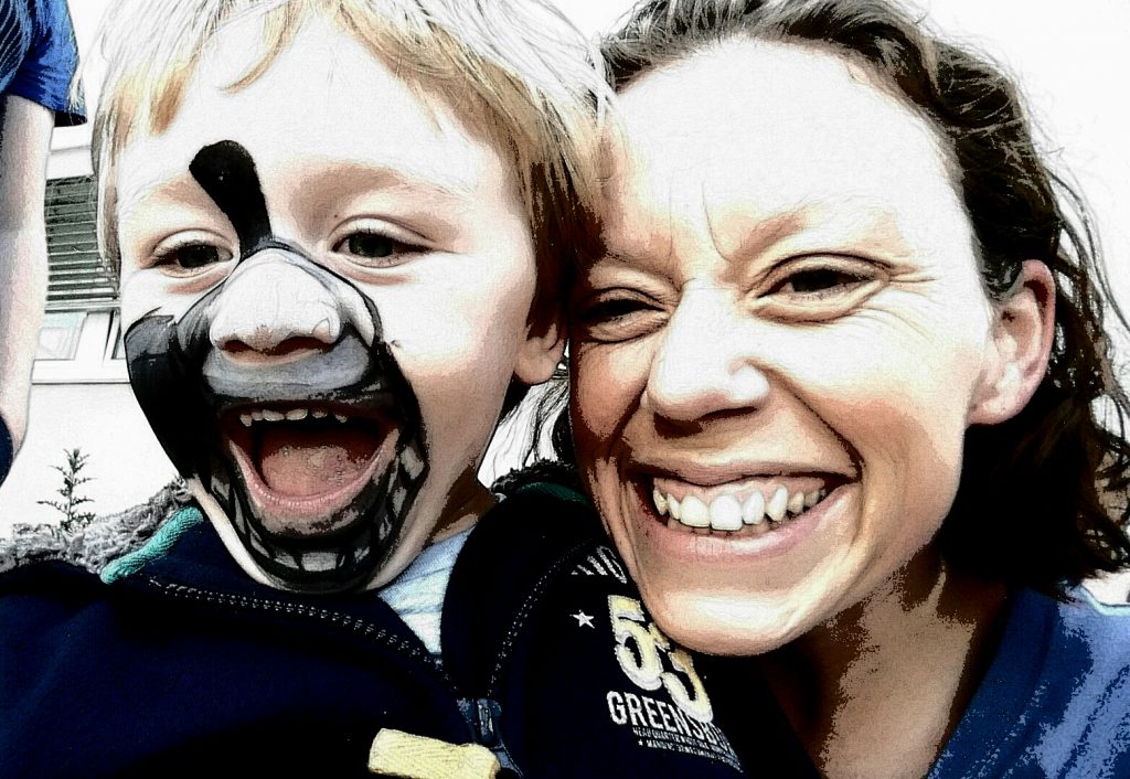 Sommerfest in der Kinderklinik. und Julius hat den Polarexpress im Gesicht.